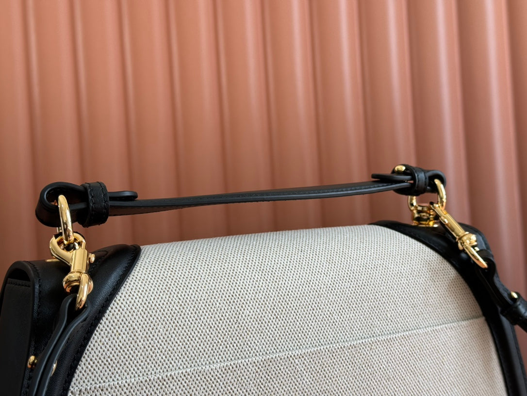 BLONDIE LARGE TOP HANDLE BAG 32 IN NATURAL COTTON LINEN CANVAS BLACK