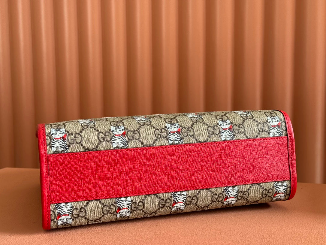 CHILDREN’S PRINTED CAT TOTE BAG 28.5 IN BEIGE AND DARK BROWN GG CANVAS RED TRIM