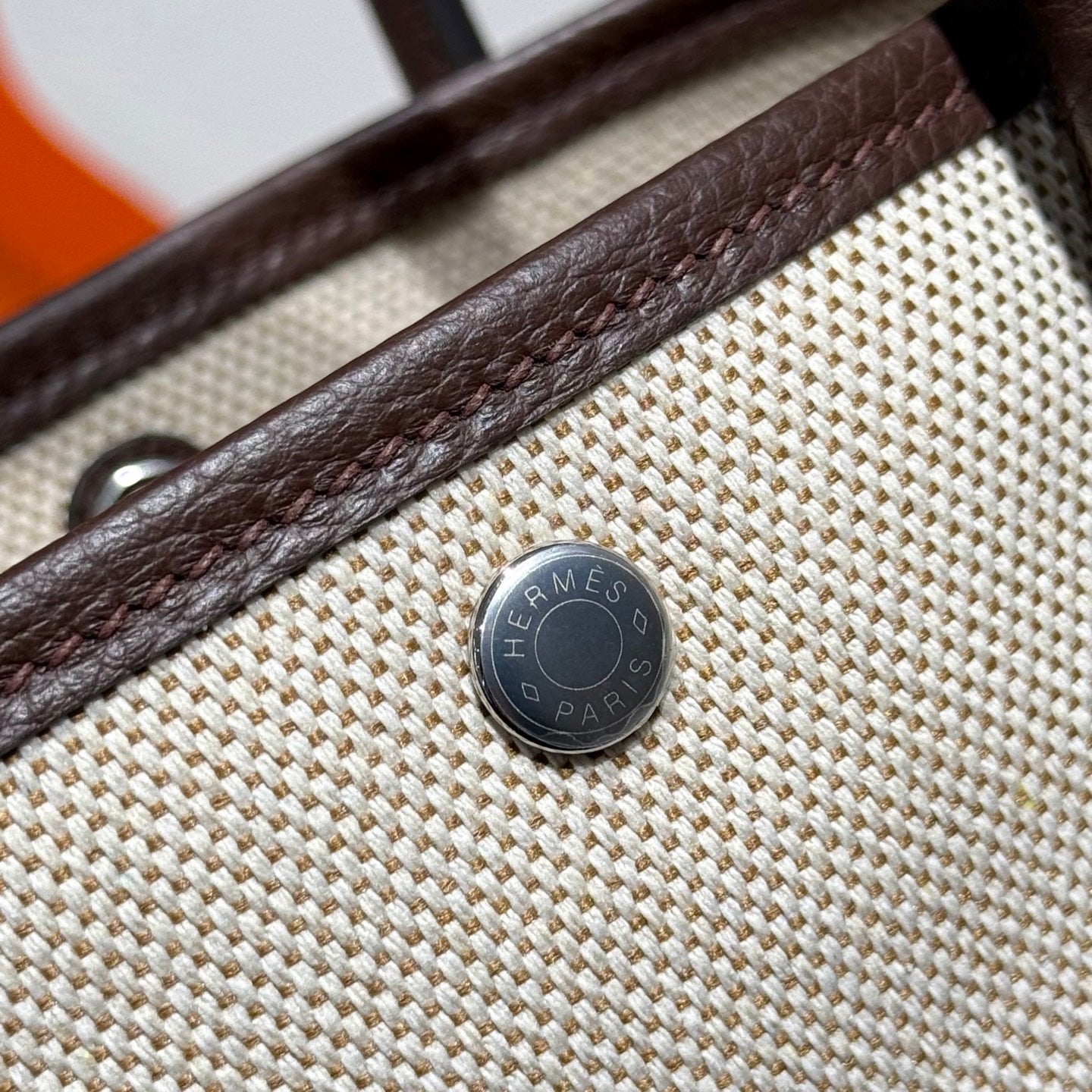 GARDEN PARTY 23CM IN BEIGE TOILETS COTTON CANVAS AND DARK BROWN