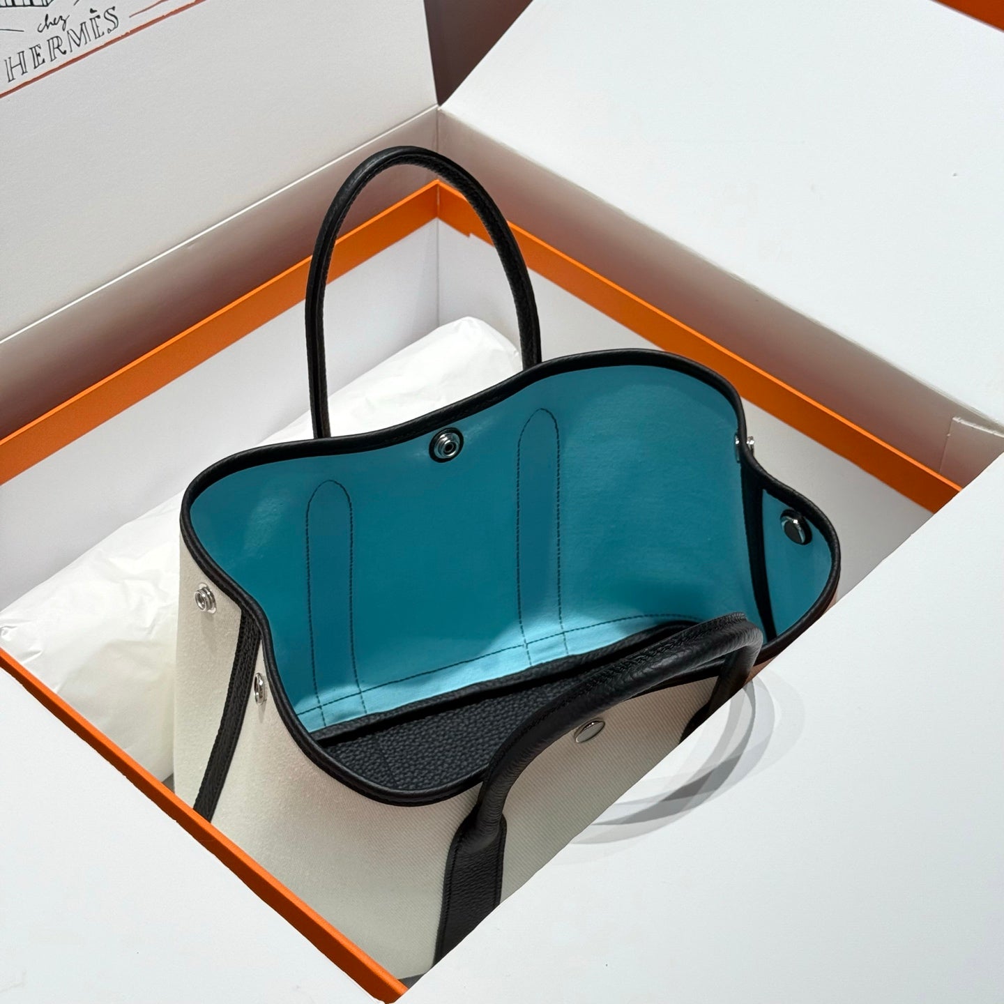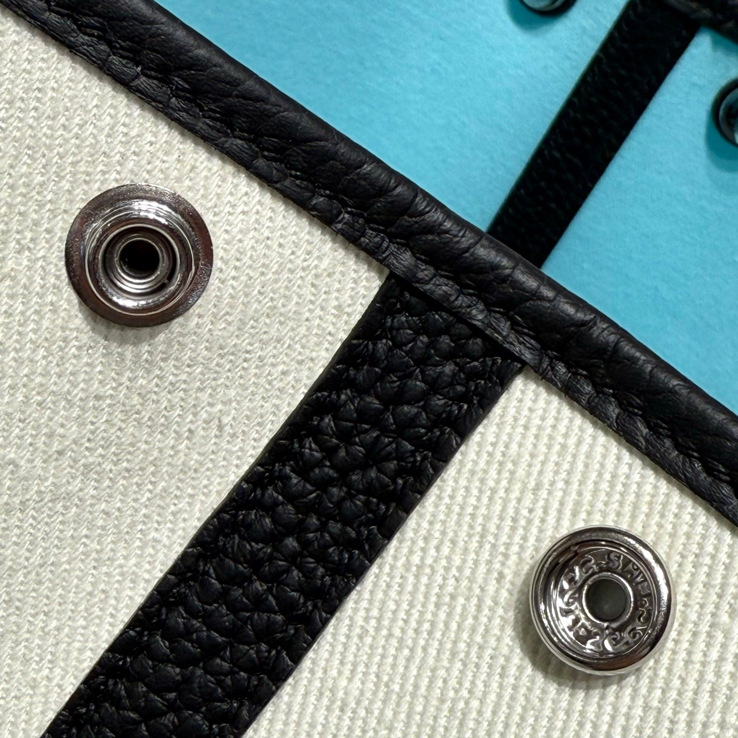 GARDEN PARTY 30CM IN WHITE TOILETS COTTON CANVAS AND BLACK SKY BLUE CANVAS ON SIDE OTHER