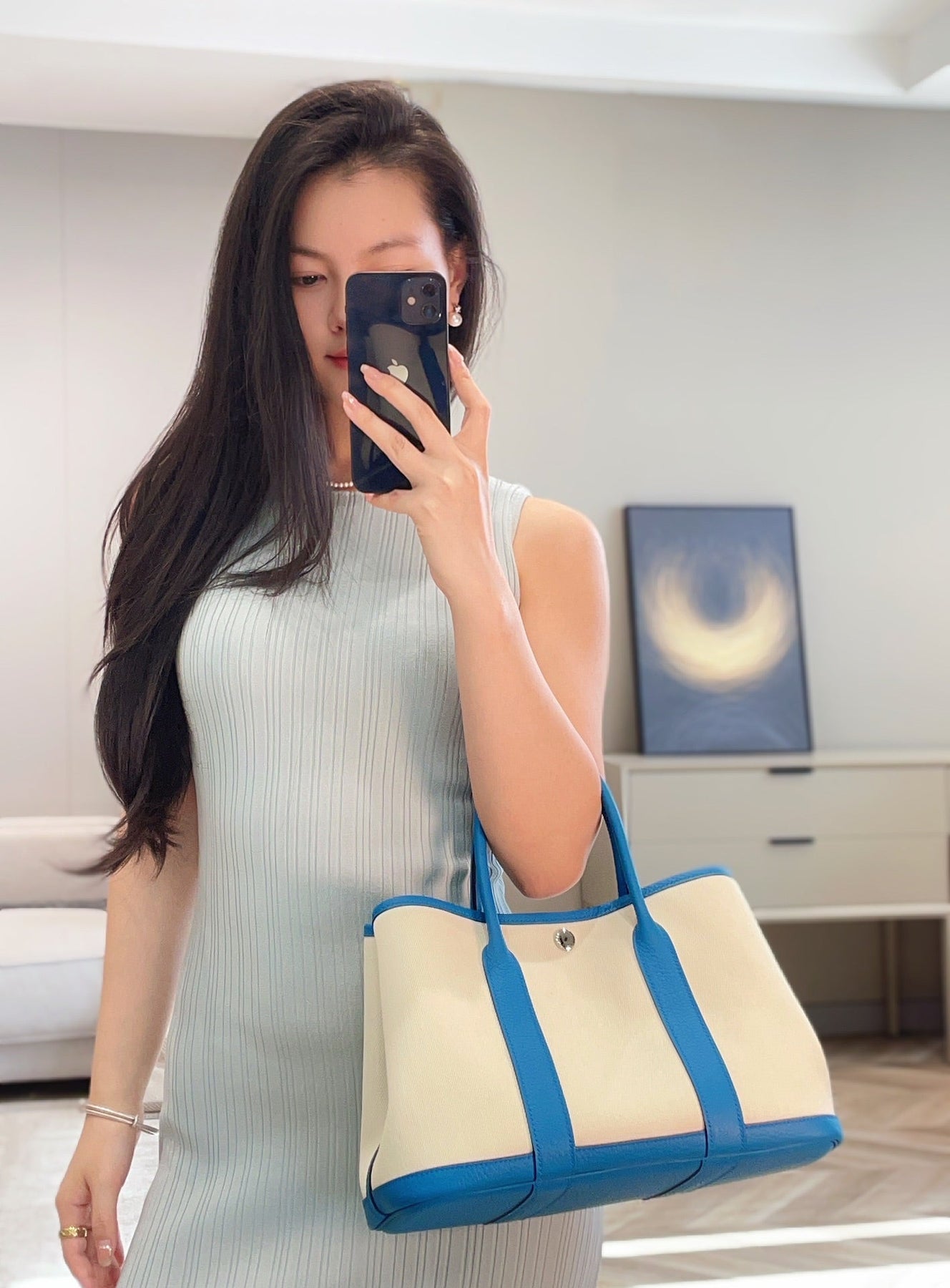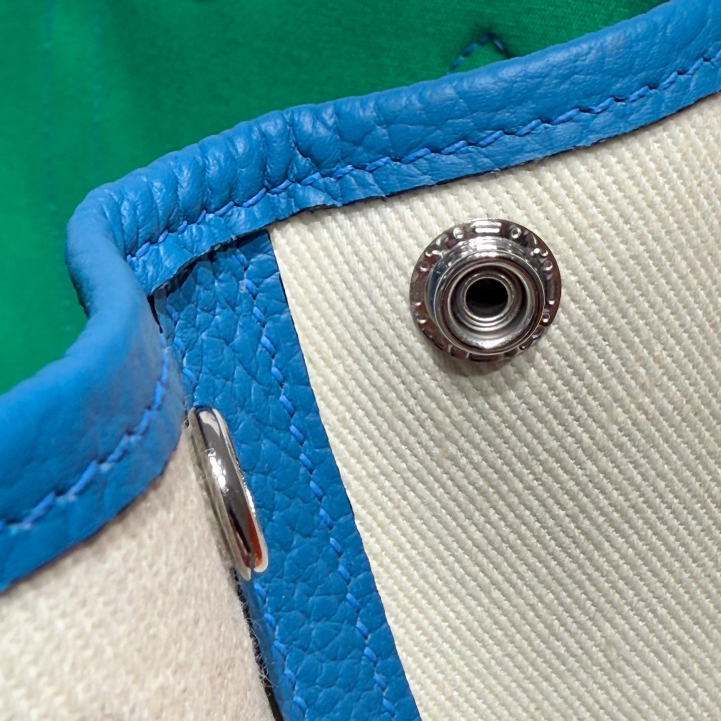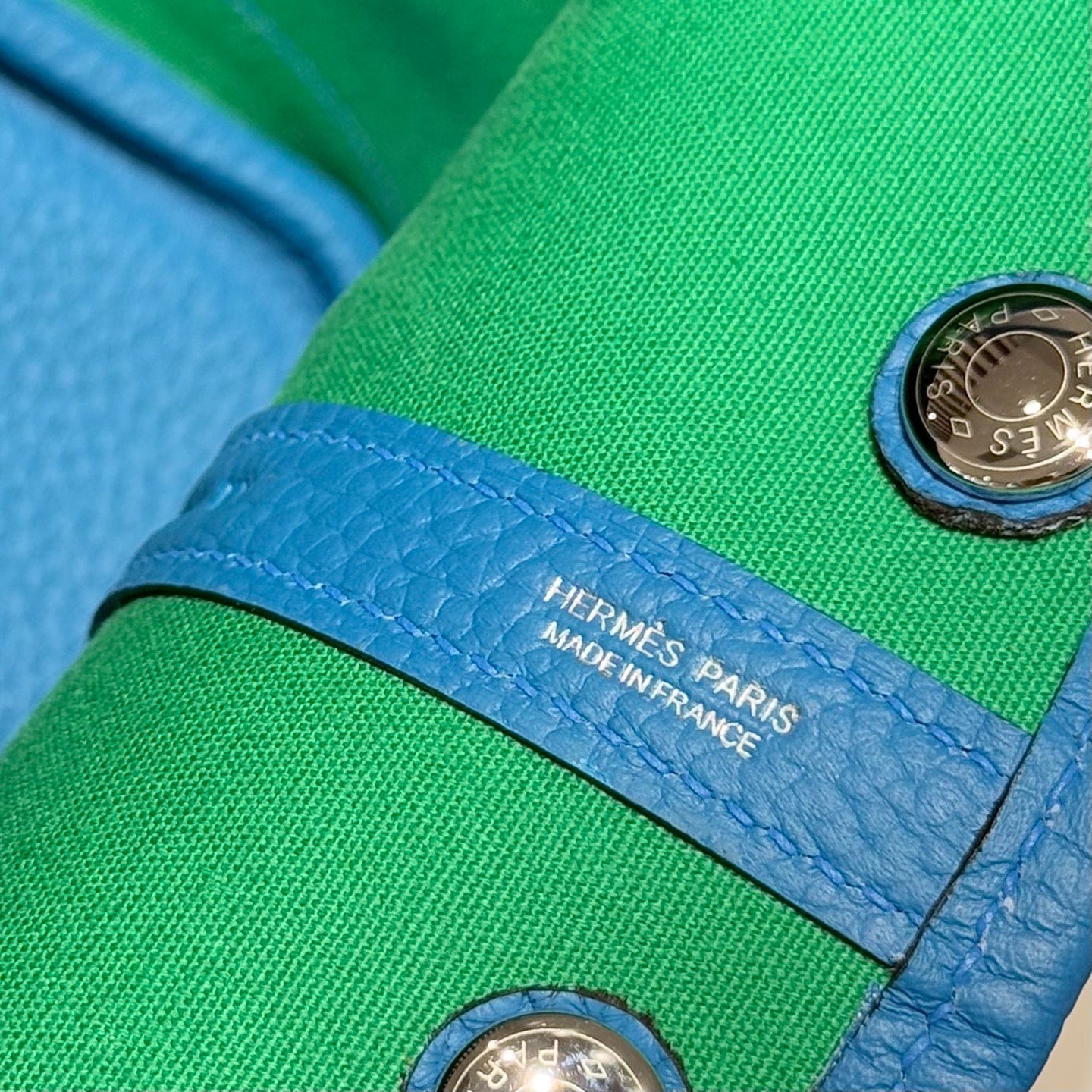 GARDEN PARTY 30CM IN WHITE TOILETS COTTON CANVAS AND BLUE GREEN ON SIDE OTHER