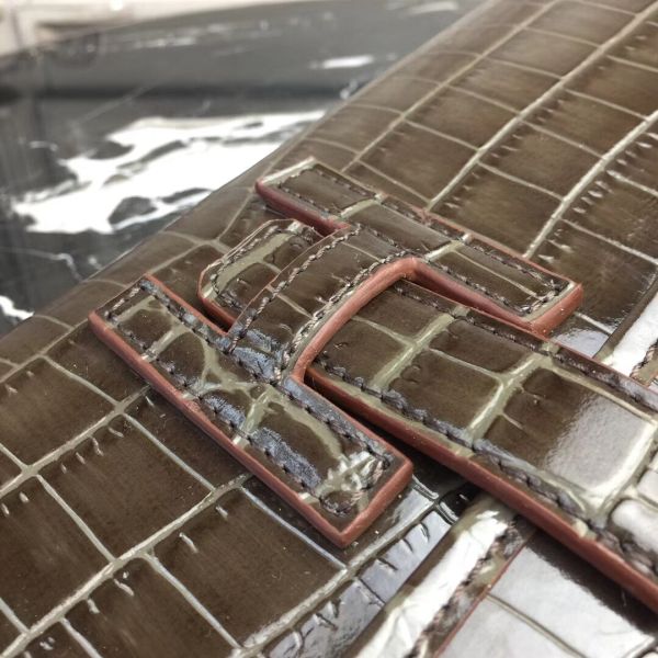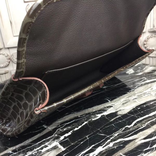 HERM Jige Elan 29 Clutch In Chocolate Embossed crocodile
