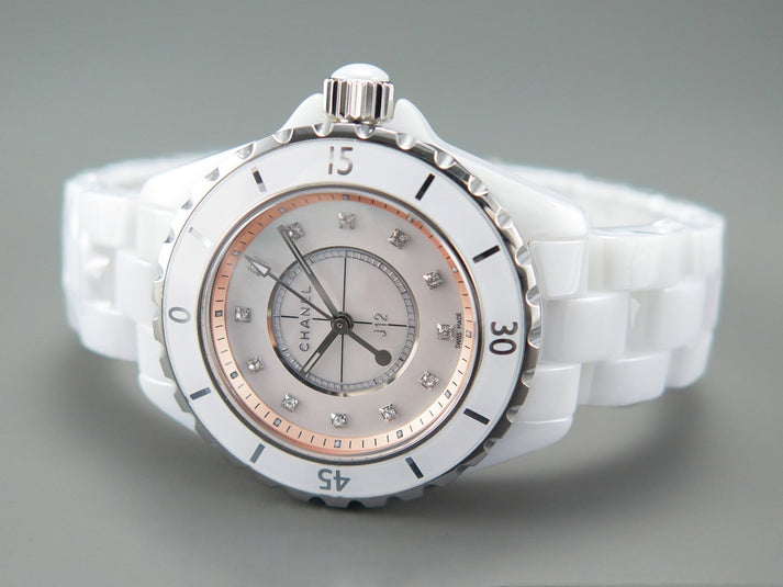 J12 33mm Quartz White Ceramic Diamond Numerals Pink Mop Dial