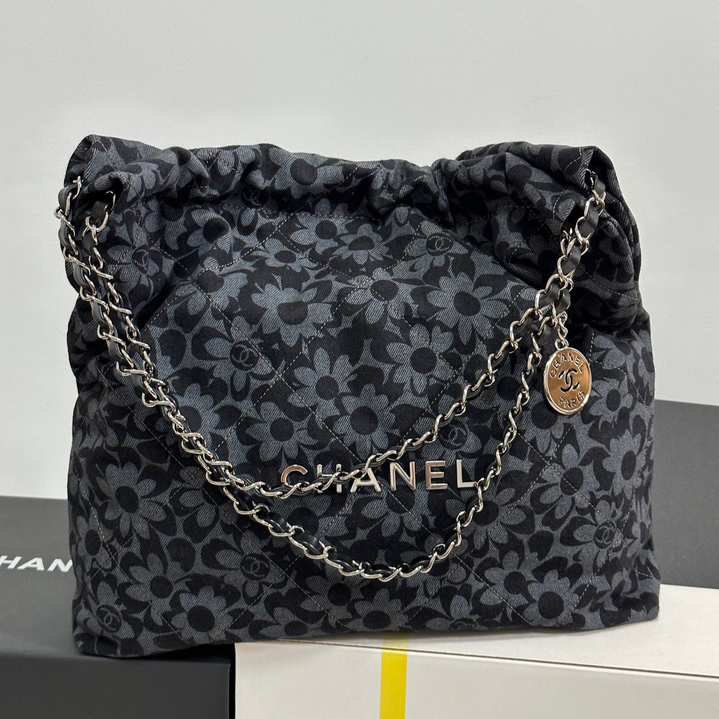 Be the first to review “LARGE DRAWSTRING FLORAL PRINT SHOULDER BAG 39 IN BLACK MIX GREY DENIM” Cancel reply