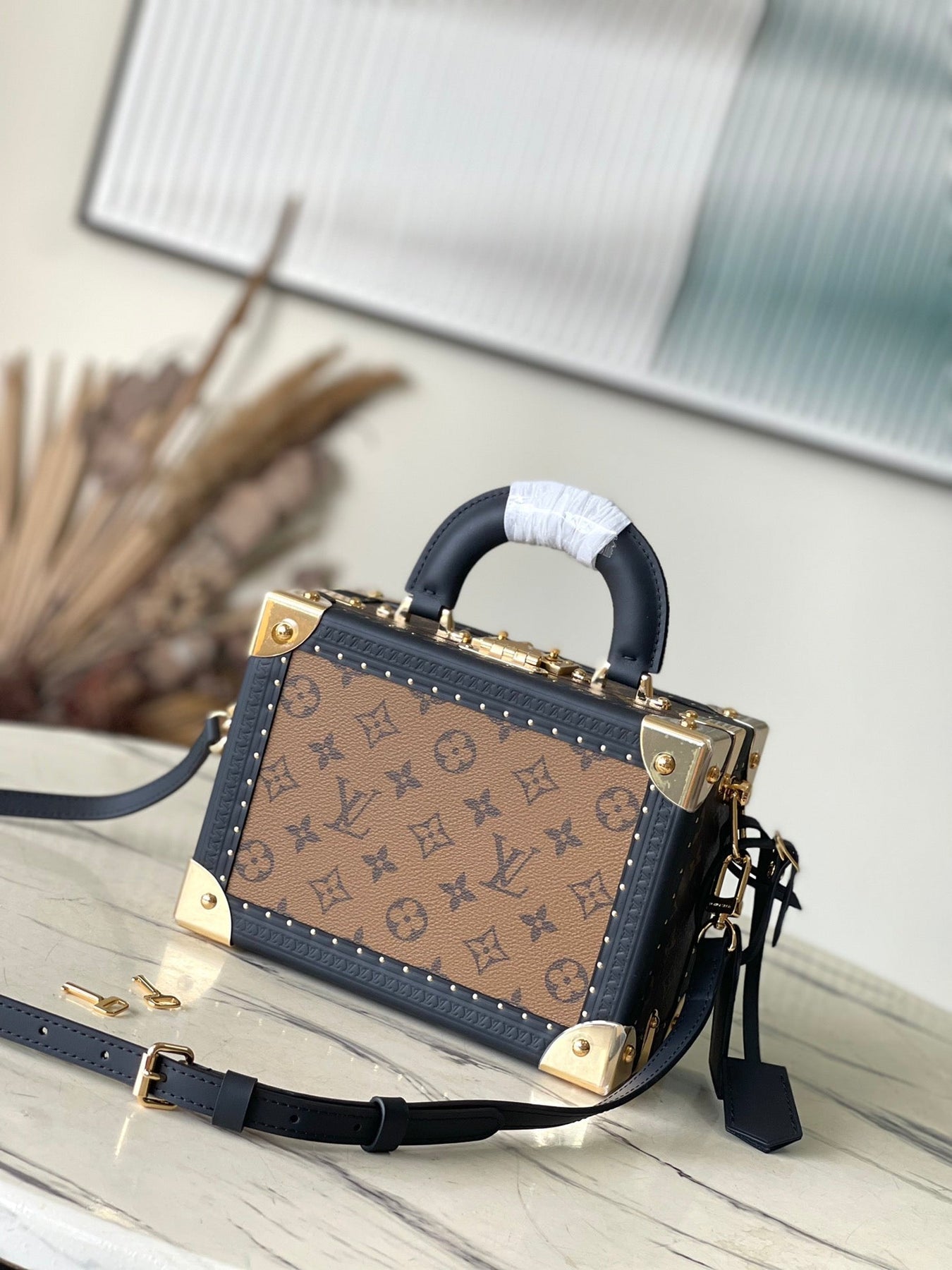 Be the first to review “PETITE VALISE 22 IN BROWN MONOGRAM REVERSE CANVAS AND BLACK CALFSKIN TRIM GOLD HARDWARE” Cancel reply