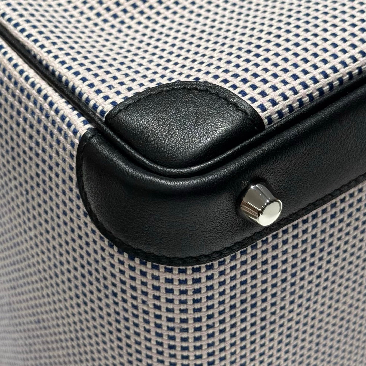 Be the first to review “QUADRILLE BIRKIN 25CM IN BLACK SWIFT WHITE BLUE PINK PLAID TOILE CANVAS” Cancel reply