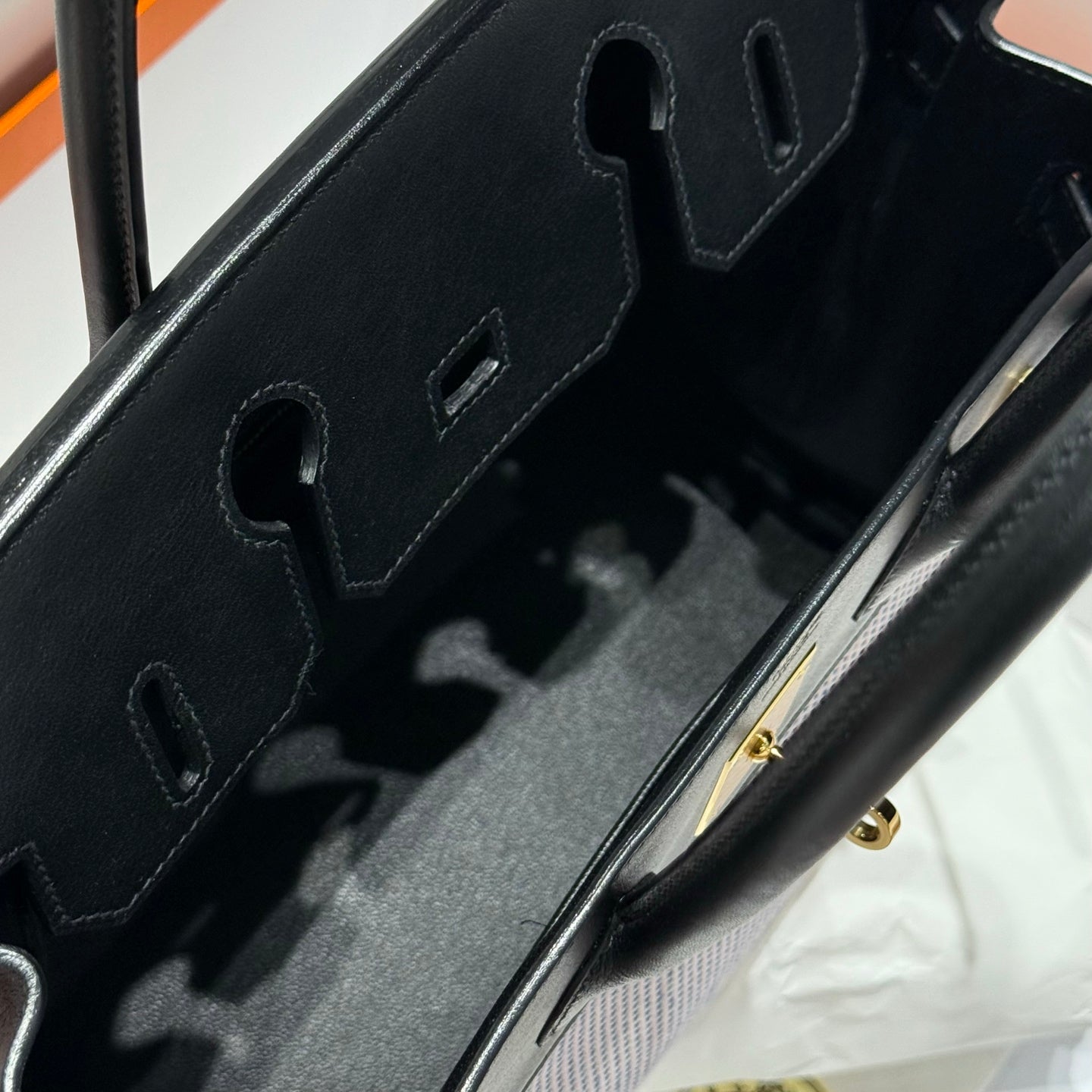 Be the first to review “QUADRILLE BIRKIN 30CM IN BLACK SWIFT WHITE BLUE PINK PLAID TOILE CANVAS” Cancel reply